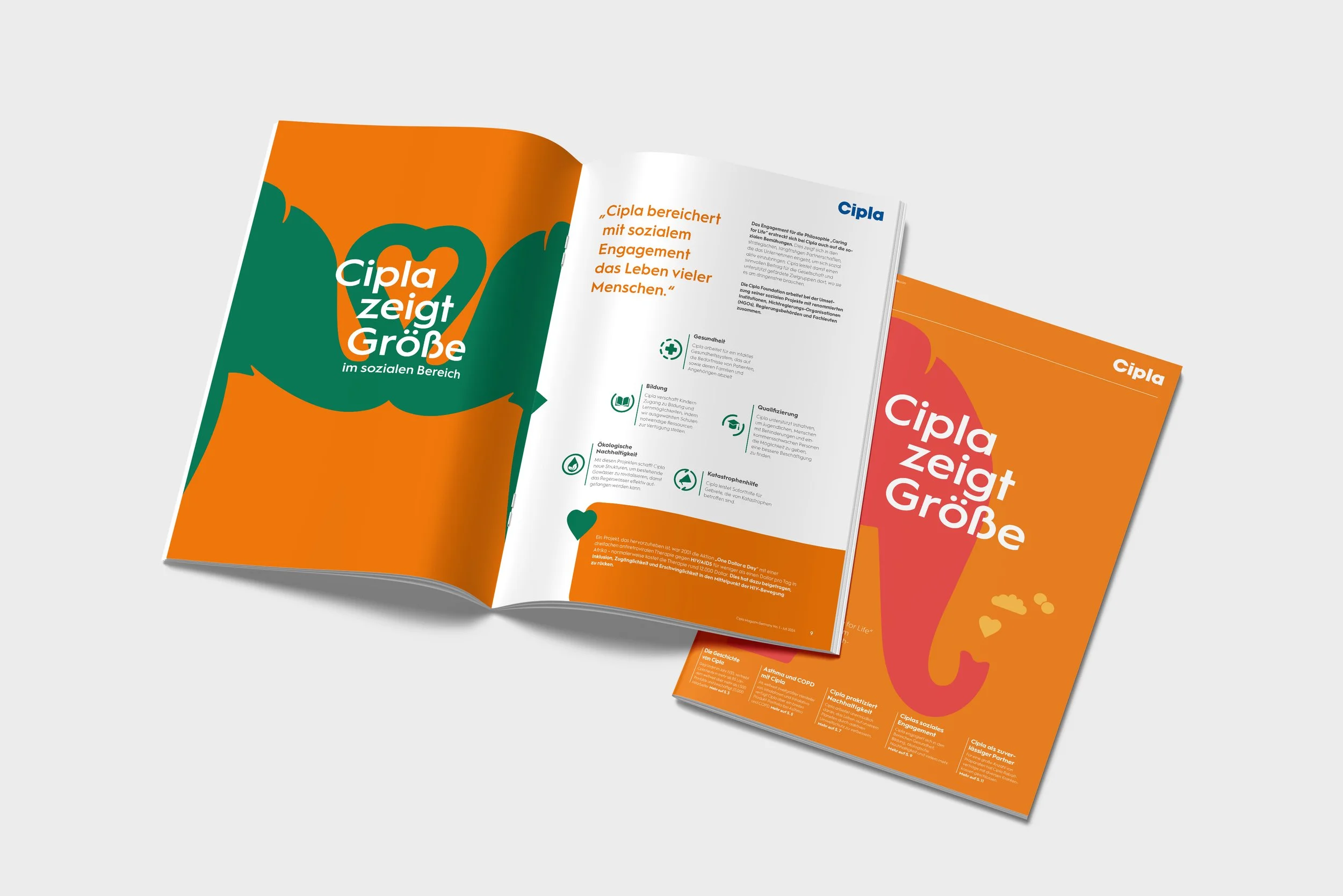 Gestaltung einer Basiskonzeption für eine Imagebroschüre. Die Zielgruppe sind ApothekerInnen. Der Kunde ist Hersteller von Inhalatoren und Inhalativa mit Sitz in Indien. Als key visuals wurden daher Elefanten und Inhalatoren mit Adobe Illustrator illustriert. Die Illustrationen variieren thematisch in den Kapiteln. Die CI-Farben wurden entsprechend verwendet.